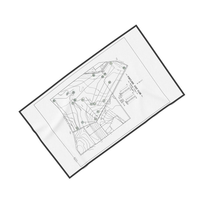 Size= 39" x 23". microfiber face/ cotton back. Raleigh Links 1915 map on front. No image on reverse.